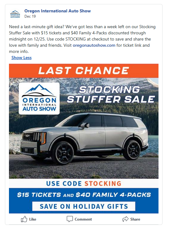 Oregon International Auto Show Promotional Social Media Post